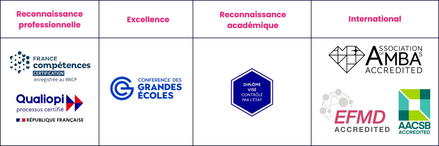Le PGE (Bac+5) délivre le Grade de Master et est accrédité EFMD Master, AACSB et AMBA.
